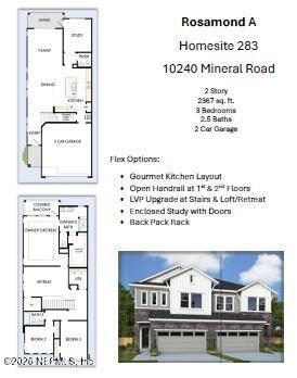 This townhouse located at 10240 Mineral Road, Jacksonville, FL 32256 is currently listed for sale with an asking price of $529,781. This property was built in 2026 and has 3 bedrooms and 2 full and 1 partial baths with 2367 sq. ft. Mineral Road is located in the Kettering at eTown subdivision. Search Kettering At ETown real estate on knoel.watsonrealtycorp.com today.