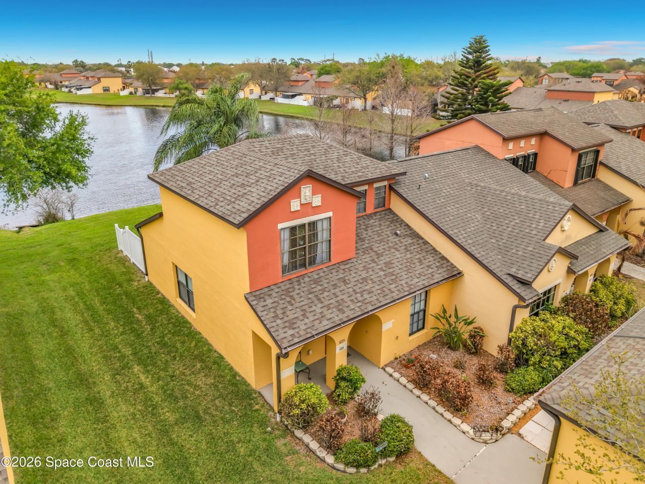 END UNIT WATERFRONT TOWNHOUSE. Bright and inviting 2 bedroom, 2 bathroom townhome with an open concept layout filled with natural light. Downstairs, the kitchen overlooks the living and dining areas, along with a guest bedroom, full bath, and laundry room with full size washer and dryer. The home was previously configured as a 3 bedroom, and the third bedroom was converted into a dining room, offering the potential to easily convert it back if desired. Upstairs, the spacious primary suite offers a private retreat with ensuite and dual closets. Step out to a serene back patio overlooking the water, perfect for morning coffee or evening unwinding. With an upgraded drainage system and lawn care included in the association fees, this townhome offers easy, low maintenance living. Community amenities include a pool, playground, and tennis courts. Recent updates include a 2023 roof, 2025 AC, and 2021 water heater, making this home truly move in ready. Dont miss this opportunity.