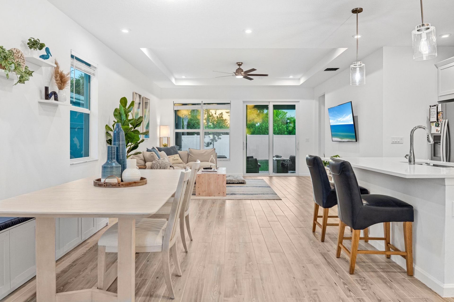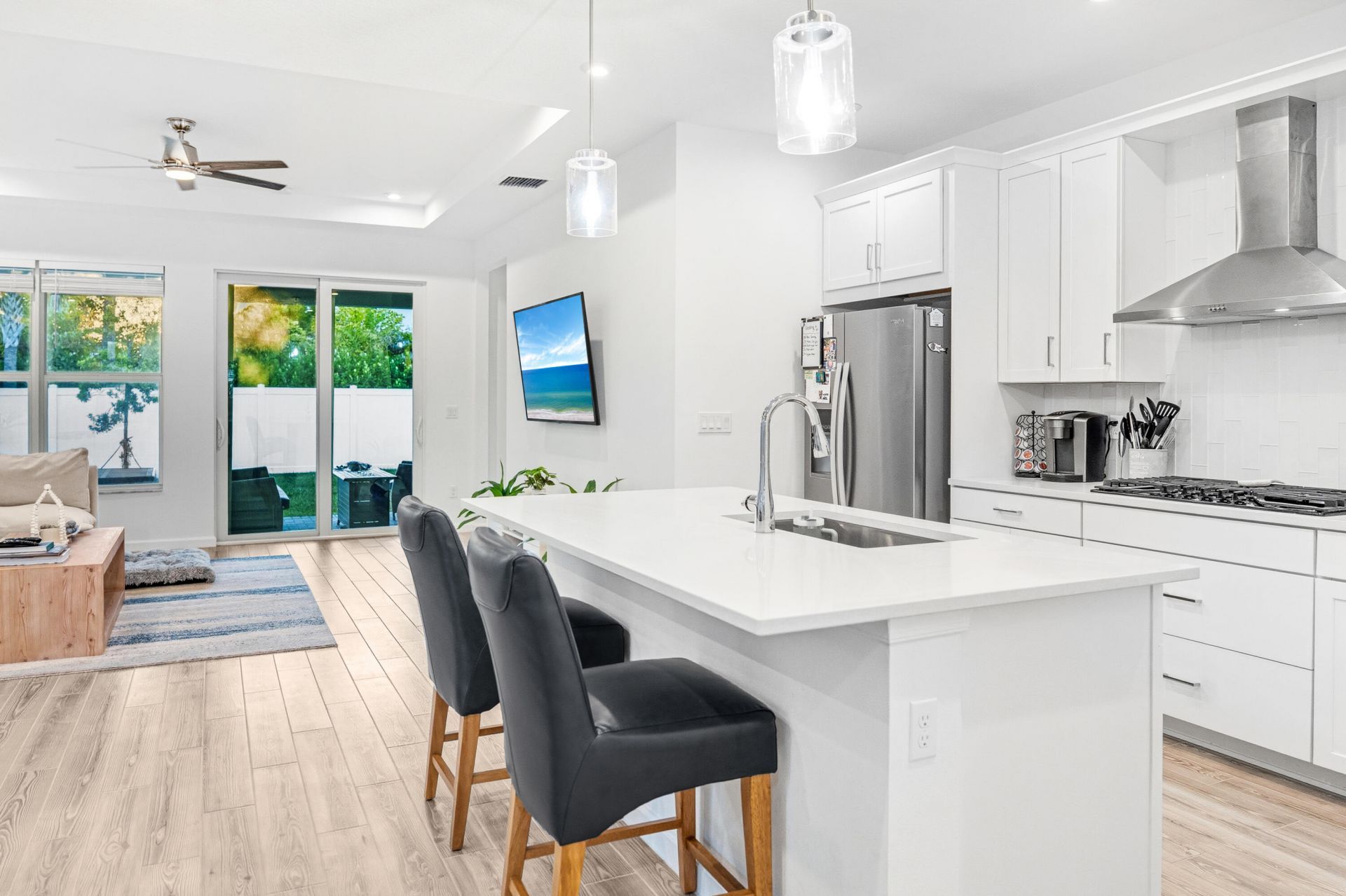 Priced to sell this week. Like-new 2022 home in Tradition. This stunning 2-bedroom, 2-bathroom home with flex room offers the perfect blend of comfort and luxury in the highly desirable Emery neighborhood of Tradition. This Aspen model by Mattamy Homes features ALL available luxury upgrades. Step inside to discover vaulted ceilings throughout the living areas and primary bedroom. The gourmet kitchen showcases elegant white shaker cabinets with quartz countertops, stainless steel appliances including a gas stovetop, built-in oven, microwave, dishwasher, and refrigerator. You'll love the walk-in pantry and convenient storage options throughout. The spacious primary bedroom includes an oversized walk-in closet and connects to a luxurious bathroom featuring a walk-in spa shower with upgraded fixtures. Both bathrooms boast beautiful quartz countertops and premium Moen fixtures. Additional features include a versatile bonus room perfect for an office, nursery, or third bedroom, hurricane-resistant glass windows allowing abundant natural light, smart home thermostat, and EV charging wiring. The home comes complete with top-of-the-line LG washer and dryer. Outside, enjoy your private fenced backyard with paver patio, perfect for entertaining. The home's location is just 5 minutes from downtown, steps away from the NEW Tradition park, top schools, and offers access to the community tram system.