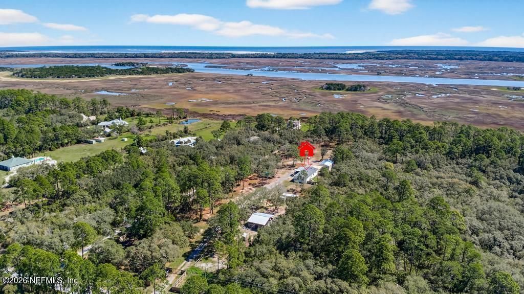 Set on over five acres with expansive views of the Intracoastal Waterway beyond the marsh, this exceptional property offers a rare blend of established equestrian amenities and premier waterfront estate potential. Whether you're a horse enthusiast looking for a private, move-in-ready setup or a visionary buyer seeking the perfect canvas to build a luxury custom estate, this property delivers space, privacy & endless possibilities.The residence currently on site offers six bedrooms, three full bathrooms, and generous living space. Two bedrooms are nonconforming w/o closets, providing flexibility for guest rooms, offices, or bonus spaces. A large dining area flows into the kitchen, which is equipped with a double oven and updated appliances. The front of the home opens to a newly built deck (2026) featuring both open & screened-in spaces, perfect for enjoying coastal breezes & marsh views. Additionally, there is a new above-ground swimming pool with deck & awning (2025). Equestrian features include a functional six-stall horse barn with paddock, while additional improvements support a wide range of lifestyle needs. The property includes a covered carport suitable for a camper or farm equipment, a detached two-car garage with office or workshop space (2023) and is fully fenced and security gated (2025) for privacy and peace of mind. The property has undergone numerous system and infrastructure upgrades, including a new roof (2025), septic system (2023), artesian well (2023), barn (2023), HVAC (2024), and whole house generator (2025), with many additional improvements also completed. With extensive infrastructure already in place and ample acreage, the property also presents a compelling opportunity for those envisioning a future custom coastal estate in a highly desirable setting. Whether you choose to enjoy the property as a fully improved equestrian retreat or envision transforming this rare waterfront acreage into a custom luxury estate, opportunities like this - offering size, views, infrastructure, and flexibility - are increasingly hard to find.