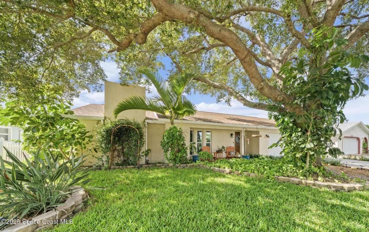 WELCOME to this charming and beautiful Merritt Island home nestled in the heart of Diana Shores. Well maintained and great upgrades throughout! All new windows and sliding glass doors installed 2023, beautifully upgraded bathrooms 2025, stainless steel LG/Whirlpool/Bosch kitchen appliances, hardwood kitchen cabinets, Trane A/C installed 2023, new air ducts, new Honeywell Home Thermostat, new electrical panel, new tankless water heater, Atlantic storm shutters, attic lights, interior and exterior freshly painted 2025, Newest version ADT wireless security on windows and doors, Ring Doorbell, new sprinkler heads front and back yard, new garage door, roof 2011, screened in back lanai, large brick fireplace, Muscadine grapevine arbor in the backyard, Meyer lemon tree, hot tub 2014 with new pump, working shed, refreshing front porch under a gorgeous oak tree, and fenced in backyard! Dont miss out on this heart warming home in a great location!