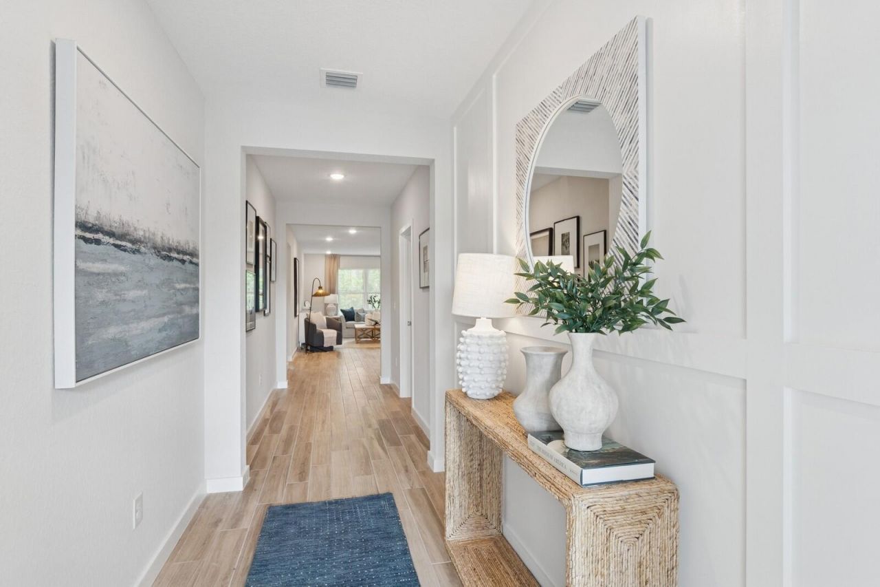 Welcome to the expansive 4-bedroom, 3-bathroom Nex-Gen floor plan-The Aegean. Located in the heart of Port Saint Lucie, this home offers a unique opportunity for families looking to live together while maintaining privacy, featuring a private in-law suite with its own separate entrance. The main living area showcases a beautiful open-concept design centered around a large 6-stool island and an upgraded kitchen featuring white cabinetry, quartz countertops, a modern loft-inspired look, soft-close cabinets, pull-out drawers, and a stylish backsplash. Additional highlights include: full impact hurricane glass, upgraded wood-look tile flooring throughout, all appliances included, and gutters installed. Style, functionality, and comfort in one of Port St Lucie's most desirable locations!
