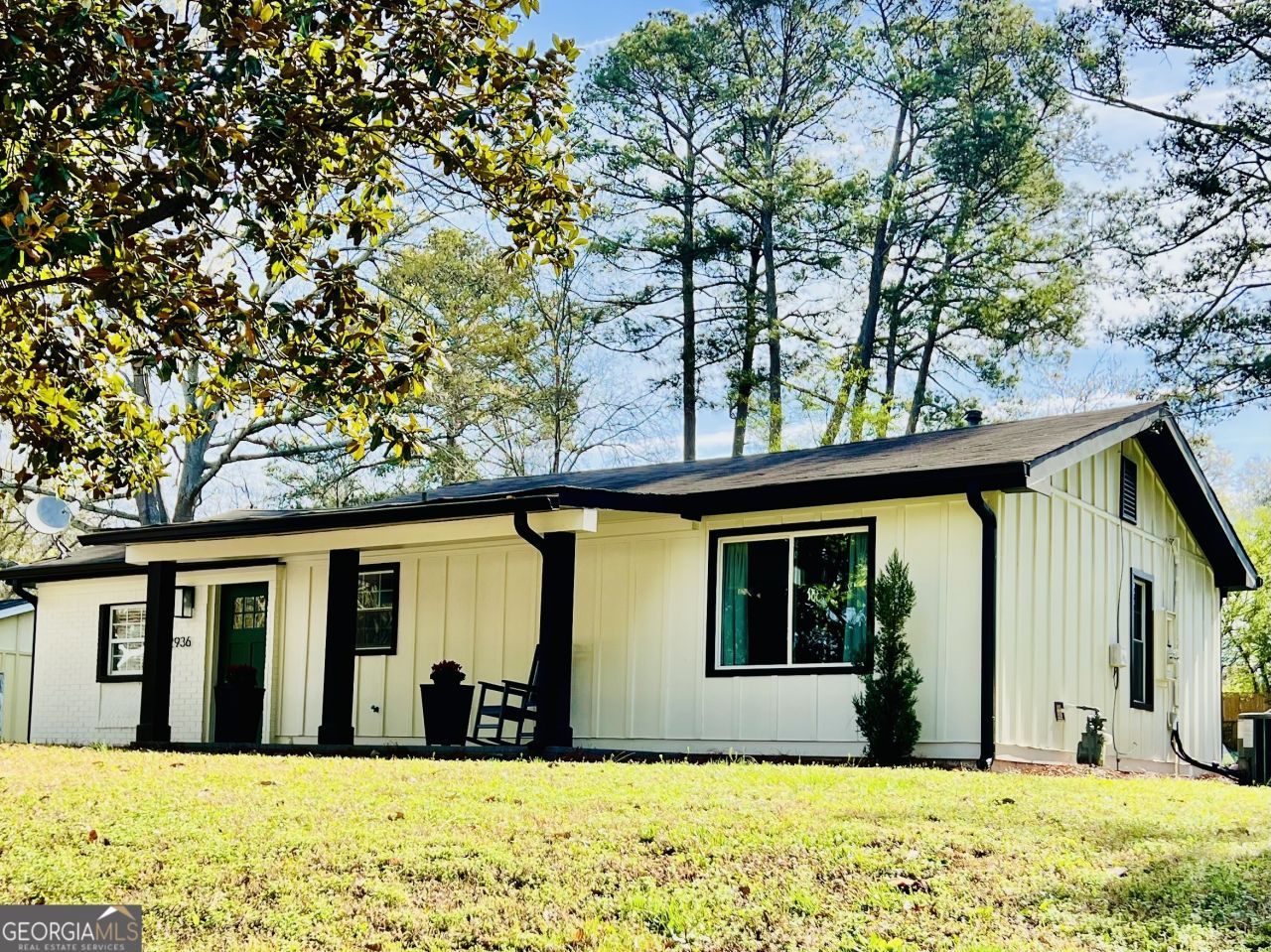 Updated bungalow (effective year built 2023) in a super convenient location! Only 2 miles to Brand New StillFire Brewing; 5.5 miles to Truist Park/Braves; 5.3 miles to I-75 @ Windy Hill AND Cumberland @ I-285; 6 miles to Marietta Square! Brand new HVAC system 2025. The covered rocking chair front porch welcomes you to the clean and modern white home with a forest green accent door. Enter to an oversized family room with vaulted ceiling and modern lighting. Behind the family room you'll find the Primary Suite with access to the back covered porch for and an en-suite private bathroom. Both the Primary and Secondary bathrooms feature natural window light, with a walk-in fully tiled shower with a frameless glass door and full body shower spray, modern vanities, mirrors and lighting as well as a tiled floor! The kitchen is gorgeous with a single bowl sink with large faucet sprayer, newer white cabinetry and white quartz countertops. Tiled backsplash and kitchen appliances are stainless steel. Off the kitchen is the breakfast room with access to the back covered porch - perfect for morning coffee or a beverage after work! The second full bathroom has dual access from the breakfast room as well as from one of the secondary bedrooms. There are 2 secondary bedrooms on the far side of the house from the Primary bedroom offering privacy and separation. The entire home (aside from the 2 tiled bathrooms) has LVP in a light, neutral tone to provide cohesiveness to the space. Don't miss the extra-large flat backyard which is already fenced on 3 sides! This backyard oasis with the covered back patio and huge grass yard provides the perfect space for a day of playing ball, cornhole or even adding a firepit and gathering with friends and family!2 driveways make off-street parking convenient. This home offers the perfect blend of modern convenience, thoughtful updates, and a serene natural setting. Don't miss this opportunity - schedule your showing today!