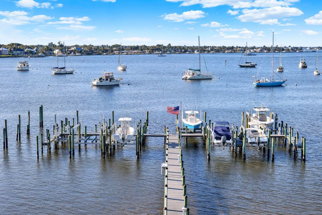 RARE opportunity! Highly sought-after Edgewater Condo, this beautifully appointed 2-bedroom + office, 2-bath residence offers timeless finishes and expansive SUNSET views over the St. Lucie River from a 45-foot balcony. Rich hickory wood floors extend throughout the home, complementing custom kitchen cabinetry and distinctive school-slate blackboard countertops. A separate laundry room includes a full-size washer, dryer, and utility sink for added convenience. The primary suite is a true retreat, featuring four closets and a refined bath with custom illuminated medicine cabinets. Additional highlights include a custom entry door, French doors, electric hurricane shutters, and electric sunshades. Enjoy riverfront living with access to a private marina offering slips for vessels up to 80'.