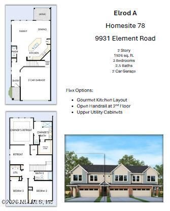 This townhouse located at 9931 Element Road, Jacksonville, FL 32256 is currently listed for sale with an asking price of $435,700. This property was built in 2026 and has 3 bedrooms and 2 full and 1 partial baths with 1926 sq. ft. Element Road is located in the Kettering at eTown subdivision. Search Kettering At ETown real estate on knoel.watsonrealtycorp.com today.